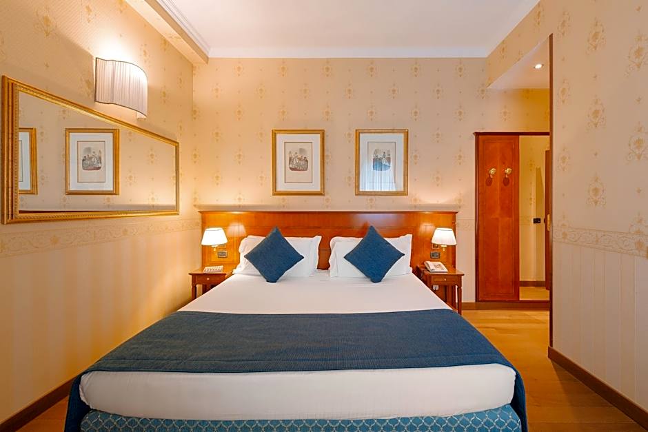 Deluxe Double Room Single Use (1 Queen Bed) is 215 square feet and includes a queen-size bed 150-154 width plus desk, hairdryer, and safe.